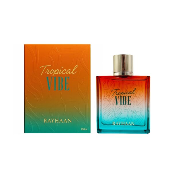 Rayhaan Tropical Vibe EDP captures the carefree energy of summer with its refreshing and exotic composition. It opens with a burst of ripe mango, bergamot, and pineapple, creating a juicy and uplifting first impression. The heart blooms with white florals and coconut, blended beautifully with a breezy sea-breeze accord that adds freshness and depth. As it settles, amber, sandalwood, musk, and vetiver create a warm, creamy base that lingers softly on the skin.